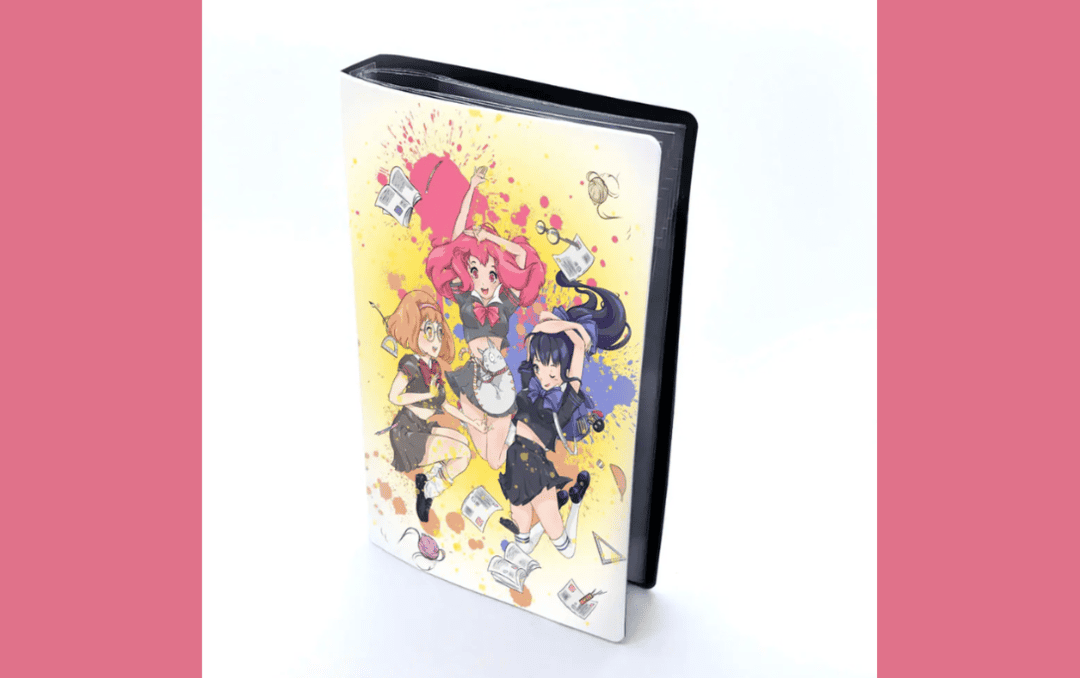 プリント学園は、アーティストやアイドルのチェキ、トレーディングカードを大量に収納できるファイル型のオリジナルチェキホルダーを作成できる専門業者です。PVC素材を使用し、両面6枚収納のクリアポケットシートが10枚セットで60枚まで収納可能です。